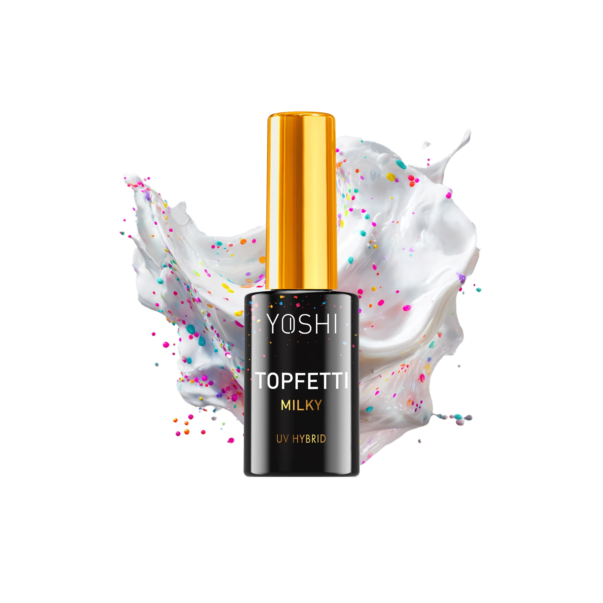 Linia Topfetti od Yoshi to więcej niż topy hybrydowe – to celebracja radości, kreatywności i wyjątkowych chwil, które nadają życiu koloru. Każdy top z tej kolekcji to mały festiwal zamknięty w buteleczce – eksplozja barw, która przenosi na paznokcie magię konfetti, symbolizującą świętowanie każdego momentu. Niezależnie od okazji, Topfettiprzypomina, że każda stylizacja może być powodem do radości, a Twoje paznokcie mogą stać się centrum uwagi.