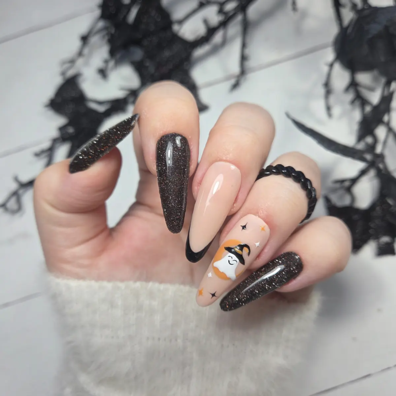 To manicure jak halloweenowy deser, różowy, błyszczący i lekko magiczny. Delikatne pastele przełamane połyskiem, które wyglądają, jakby właśnie wysypały się z czarodziejskiego pudełka pełnego cukierków. Na pierwszy rzut oka słodki, ale z nutą przewrotności, dokładnie taki, jak powinien być styl Candy Witch.