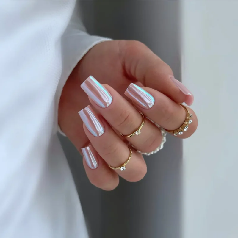 Ważną rolę odgrywa także wykończenie. Matowe topy nadają paznokciom aksamitnej miękkości, a efekt swetra, tworzony przy pomocy pudru akrylowego, przypomina ulubiony, miękki kardigan. Jeśli chcesz dodać odrobiny blasku, wybierz delikatne pyłki w odcieniu ecru lub złamanej bieli. Ich subtelne refleksy będą wyglądały pięknie w świetle świec.