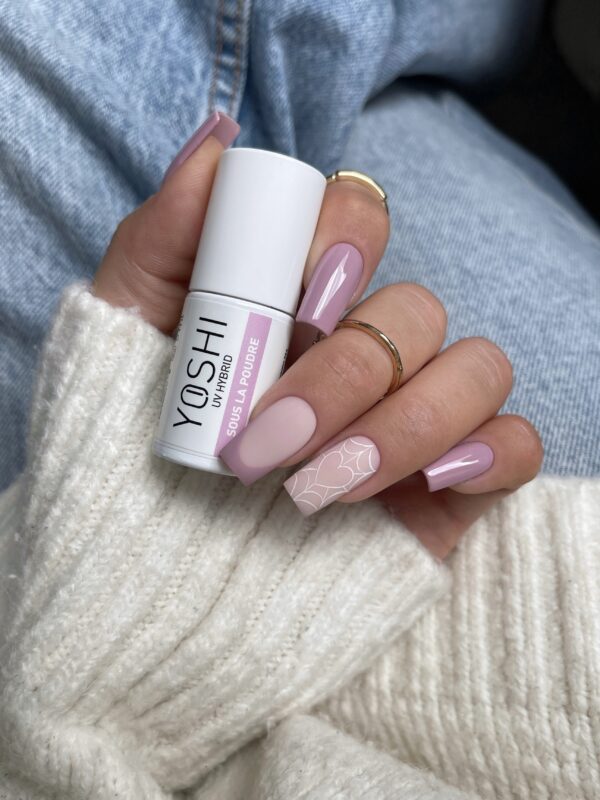 Mat dodaje paznokciom miękkości i elegancji, sprawiając, że kolory stają się bardziej aksamitne i wyciszone. Błysk z kolei odbija światło, tworzy wrażenie luksusu i podkreśla detale. Połączenie tych dwóch faktur działa jak gra świateł i cieni: subtelne, a jednocześnie wyraziste.