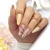 Ciepły, pastelowy żółty ze złotawą nutą. Miękki i promienny, subtelnie rozświetla dłonie.