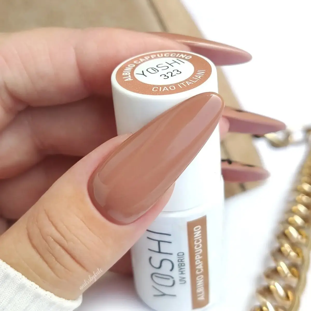 Kolekcja „Ciao Italiani” od YOSHI to ukłon w stronę włoskiego rytuału picia kawy, gdzie bogaty aromat i przyjemne ciepło spotykają się w jednej filiżance. Znajdziesz tu odcienie głębokiego brązu i delikatne, mleczne beże, które razem tworzą harmonię niczym espresso z aksamitną pianką. Szczypta kakaowego proszku i nuty karmelowego koloru dopełniają całości, przenosząc nas do tętniących życiem włoskich kawiarni. Kolekcja „Ciao Italiani” została starannie skomponowana tak, aby każdy odcień – od ciepłego beżu aż po głęboki brąz – idealnie podkreślał naturalne piękno różnych tonacji skóry. Dzięki temu, niezależnie od karnacji, z łatwością znajdziesz swój wymarzony kolor.