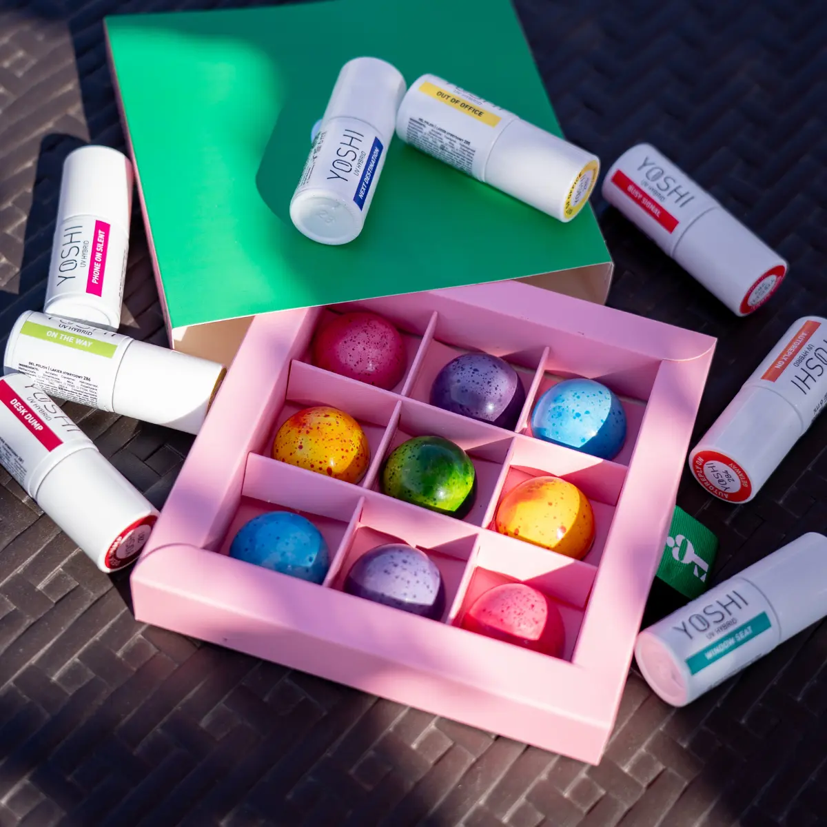Osiem intensywnych odcieni oddaje ten stan idealnie. To kolory pełne energii, ale bez chaosu. Wyraziste, nasycone, przyciągające uwagę jak komunikaty, które dobrze znasz: Phone on Silent, Out of Office, Next Destination. Każdy z nich to mały sygnał, że jesteś już w drodze.