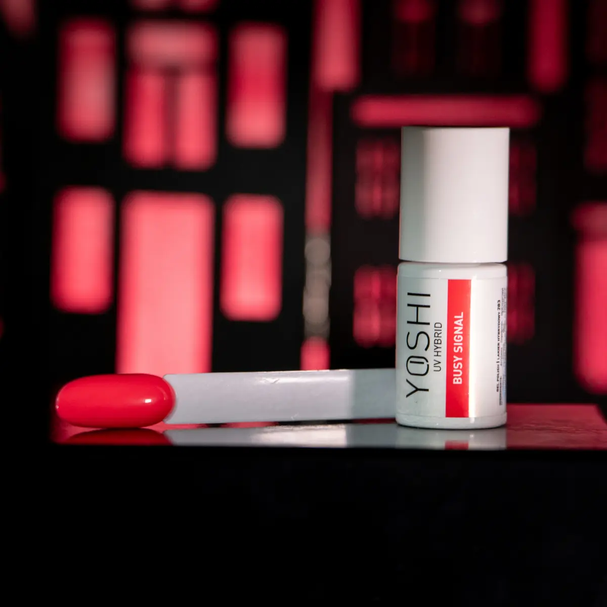 Ciepły, neonowy koral. Nasycony, wyrazisty i bardzo soczysty. Kolor, który od razu przyciąga uwagę i nadaje stylizacji mocny charakter. Sygnał zajętości. Krótki, powtarzalny rytm. Wszystko jest w ruchu. Ten kolor działa tak samo: intensywnie, bez pauzy.