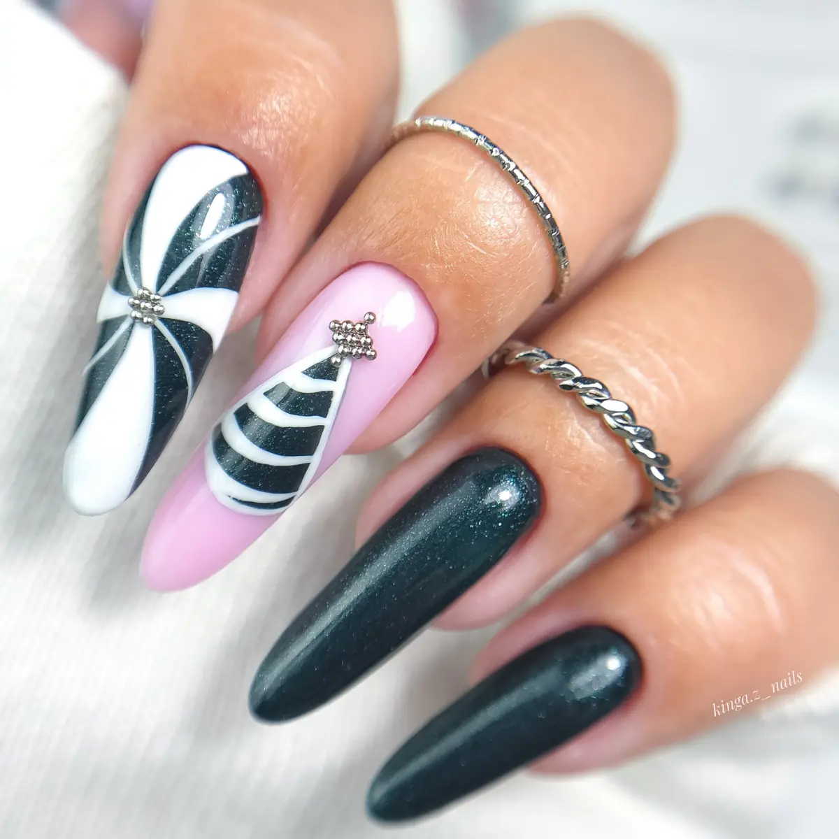 Głęboka zieleń z subtelną drobiną wygląda jak choinka po lekkim liftingu w luksusowym spa. To kolor samozaparcia, ironii i błysku w oku, gdy mówisz: Tak, wszystko pod kontrolą, choć właśnie przykleiłaś do kota wstążkę. Bo czasem, żeby uratować Święta, trzeba po prostu założyć własny strój elfa.