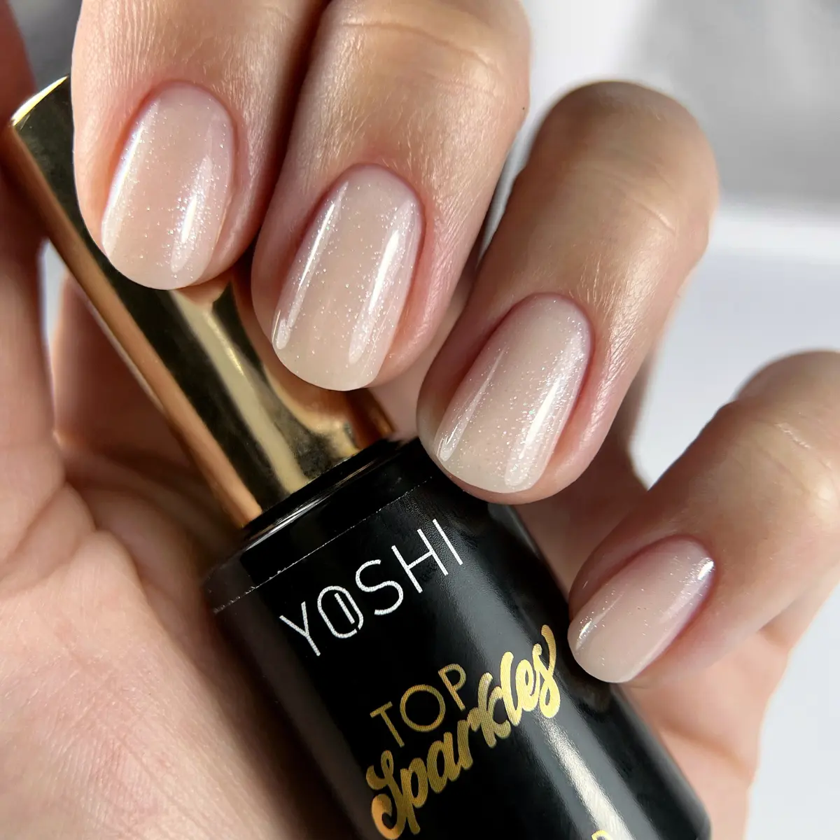 Top Sparkles UV/LED to wyjątkowy top hybrydowy, który łączy delikatne perłowe drobinki z mleczną konsystencją, oferując paznokciom subtelny blask i nieskazitelne wykończenie. Dzięki swojej formule sprawia, że każda stylizacja wygląda świeżo i elegancko, bez zbędnego wysiłku.