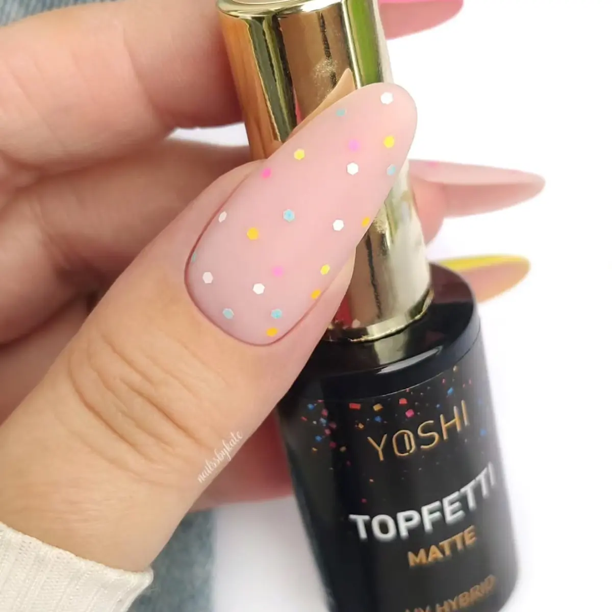 Linia Topfetti od Yoshi to więcej niż topy hybrydowe – to celebracja radości, kreatywności i wyjątkowych chwil, które nadają życiu koloru. Każdy top z tej kolekcji to mały festiwal zamknięty w buteleczce – eksplozja barw, która przenosi na paznokcie magię konfetti, symbolizującą świętowanie każdego momentu. Niezależnie od okazji, Topfetti przypomina, że każda stylizacja może być powodem do radości, a Twoje paznokcie mogą stać się centrum uwagi.