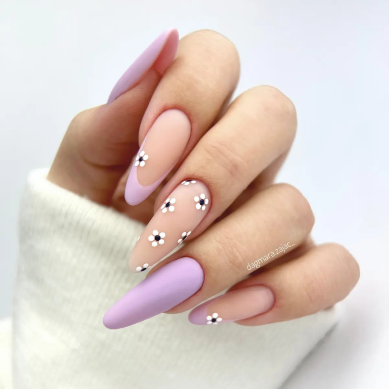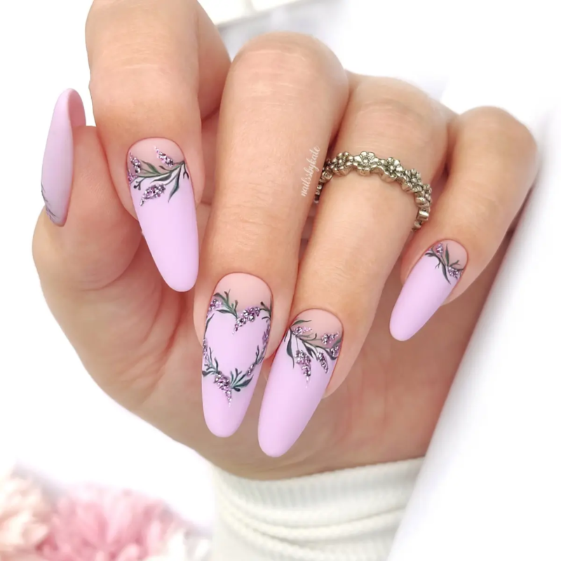 Wiosną 2025 na paznokciach będzie królować także delikatny fiolet, zwłaszcza odcienie lawendy. Ten kolor jest doskonałą alternatywą dla różu i bieli. Choć jest subtelny, dodaje lekkości i świeżości, doskonale pasując do komunijnej atmosfery.