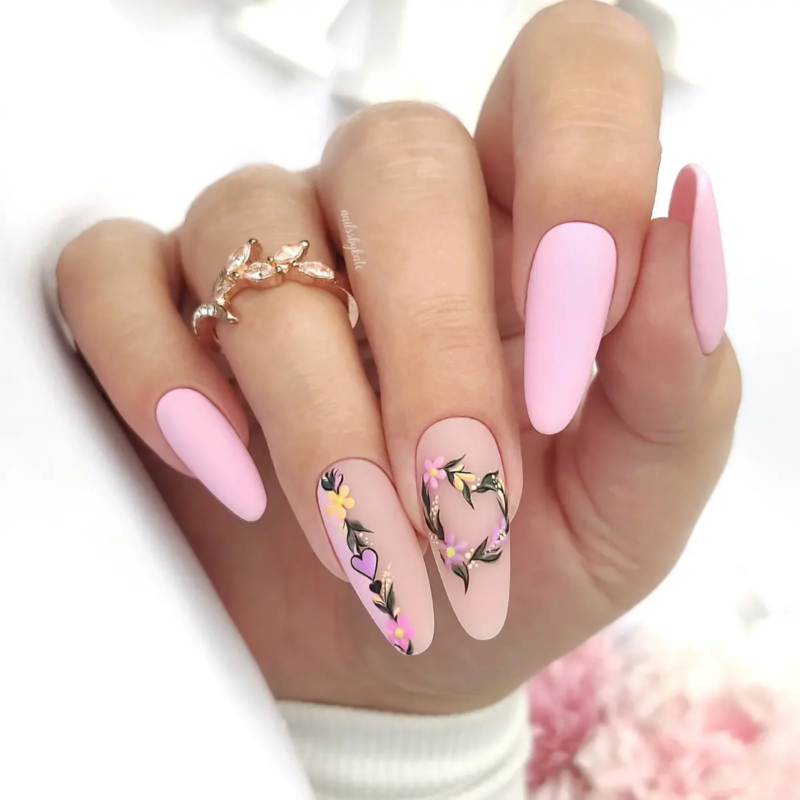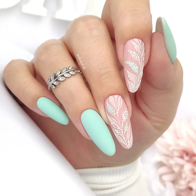 Kwiaty to symbol wiosny, odrodzenia i nowego początku, a także doskonały motyw na paznokcie na Komunię. Warto postawić na małe, delikatne kwiatki namalowane na jednym lub dwóch paznokciach. Pamiętaj, aby wzór był subtelny i niezbyt rozbudowany. Idealnym rozwiązaniem będą kwiaty w odcieniach pastelowego różu, błękitu czy bieli, które będą pasować do całej stylizacji.
